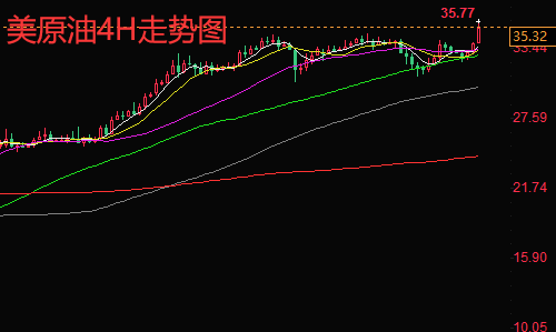原油从4小时线来看K线只从上周五回落至30.50后筑底反弹上涨,K线就一直处于单边震荡缓慢上行阶段,技术面分析来看MA5与MA10均线企稳于33.0再次形成金叉缓慢上探走高,KDJ与RSI均线三线并行上扬。综合来看,下周一短线操作思路上陈文龙个人建议以回调做多为主,反弹高空为辅,上方短期重点关注36.2-36.4一线阻力,下方短期重点关注34.0-34.2一线支撑。