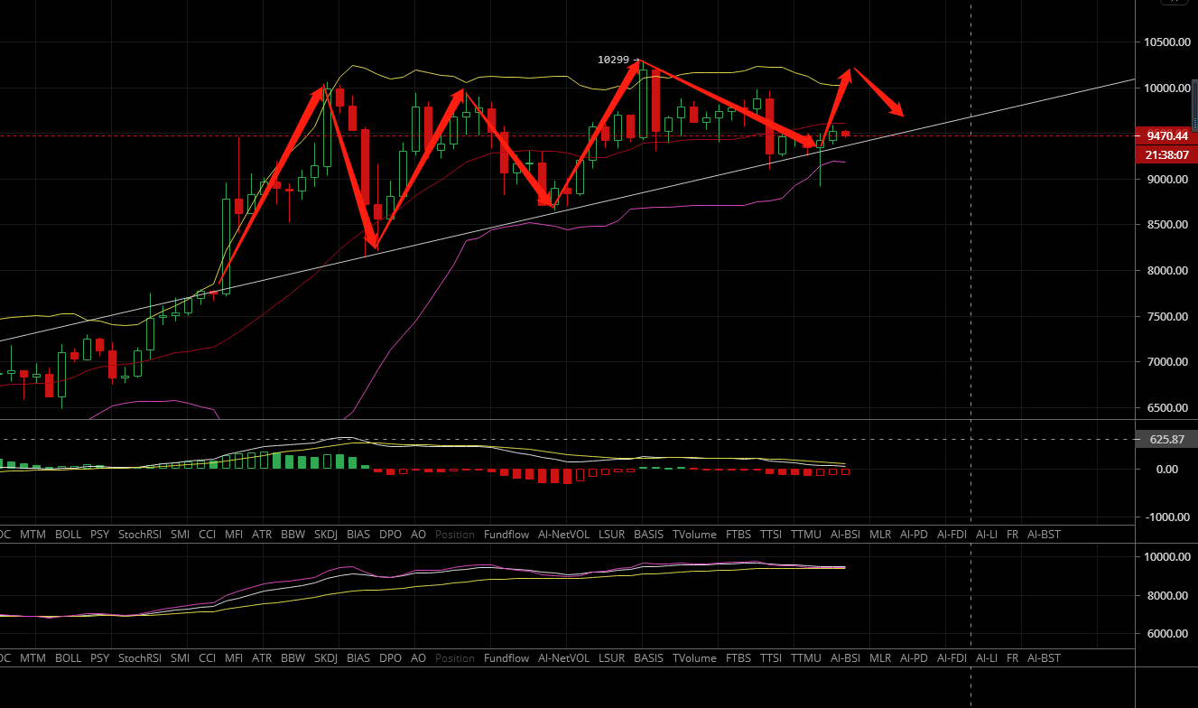 1:9420附近进多,止损9300,目标9580附近