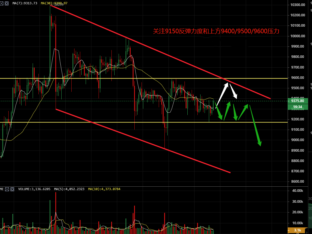 1:9400-9450附近空,止损9600,目标9300-9250