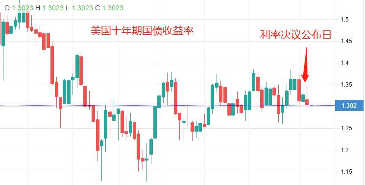 从图中可以发现,美联储的利率决议和鲍威尔的讲话,虽然都偏向鹰派,但美国十年期国债收益率不涨反跌。这是非常需要重视的情况,因为它意味着市场上大量的资金依旧不认同当前的经济复苏,只愿意投身到相对安全的债券市场,并不想过多参与投资和消费。