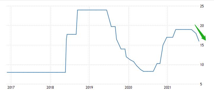 2019年10月份,土耳其的CPI还只有8.55%,一年时间过去,CPI已经猛增至将近20% 。要知道,主要经济体将2%的CPI设定为合理水平,超过3%就有物价失控的风险,超过5%就认定为恶性通胀。现如今土耳其的CPI已经达到19.58%,可以说局面接近失控。