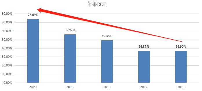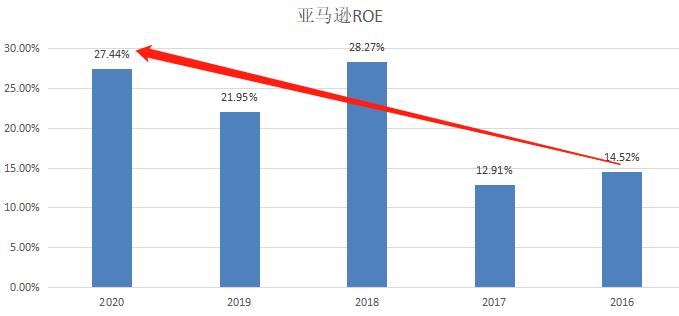 亚马逊和微软一样,都是在2018年时ROE突然走高,随后的两年出现回落。亚马逊ROE同样维持整体向上的态势,只不过2020年的ROE只有27.44,相比微软和苹果ROE低很多。对于纳斯达克100指数未来的走势来说,最大的风险点在亚马逊的盈利能力身上。
