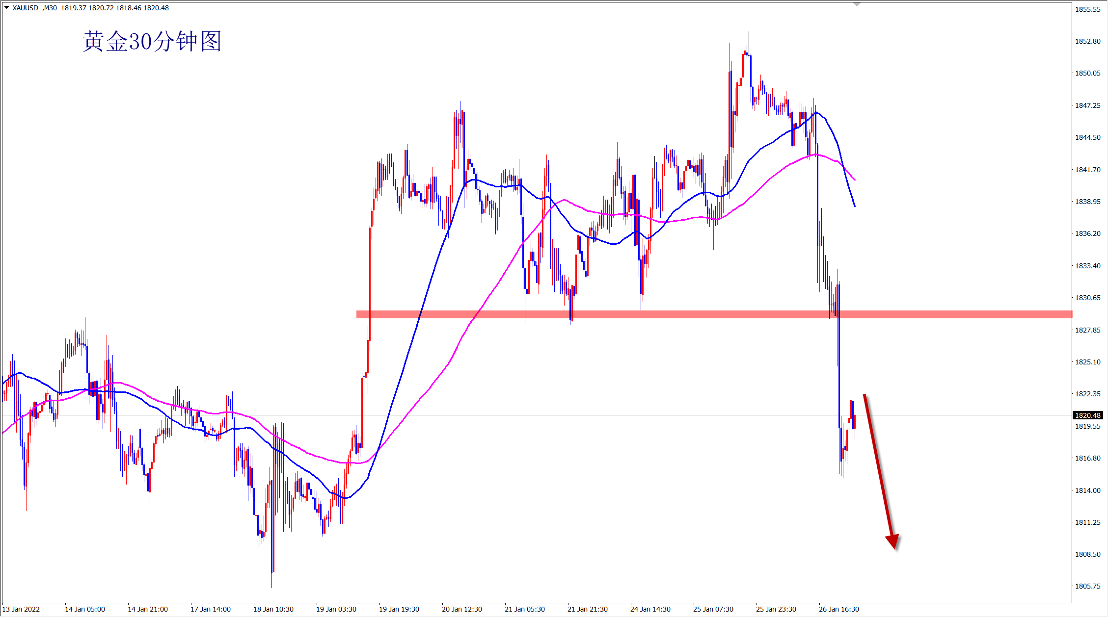 ;; 黄金1825空,止损1833,目标1808-1800;