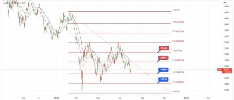 ATFX恒指:大多数亚洲股市周三从近期跌势中小幅回升,香港恒生指数初呈现摆脱周初的悲观情绪走势。香港恒生指数周三盟盘上涨0.7%,前一交易日暴跌逾 2%。 本周初,因全球7月制造业采购经理指数呈现下滑, 全球加息阴霾使经济增长放缓的忧虑升温以及中国房地产市场等因素令香港股市感到不安。周三中国财新服务业采购经理指数调查显示,由于放松防控限制提振了消费者信心,中国 7 月份的服务活动以15个月来最快的速度增长,消息间接支撑香港恒生指数, 而中国沪深300蓝筹股指数均持平,波幅落后于亚洲区股市。
