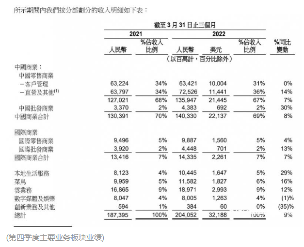 在截至2022年3月31日的第四季度,阿里巴巴的营收同比增长9%,达到2040.5亿元人民币(合304亿美元)。该公司的运营收入为167.1亿元人民币(合24.8亿美元),而去年同期的运营亏损为76.6亿元人民币(合11.4亿美元)。