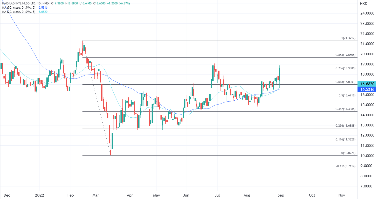 ATFX指出,早在两周前,海底捞已经发了盈利预警,当时预期上半年公司营业收入预计最高下滑17%,已经给市场提前报备,而最终财报基本符合预期。虽然净利润将延续去年下半年以来的亏损局面,但亏损较去年已经有所改善,从6月份开始经营表现开始好转,市场关注其业务在向多元化以及削减成本的尝试下实现优化。