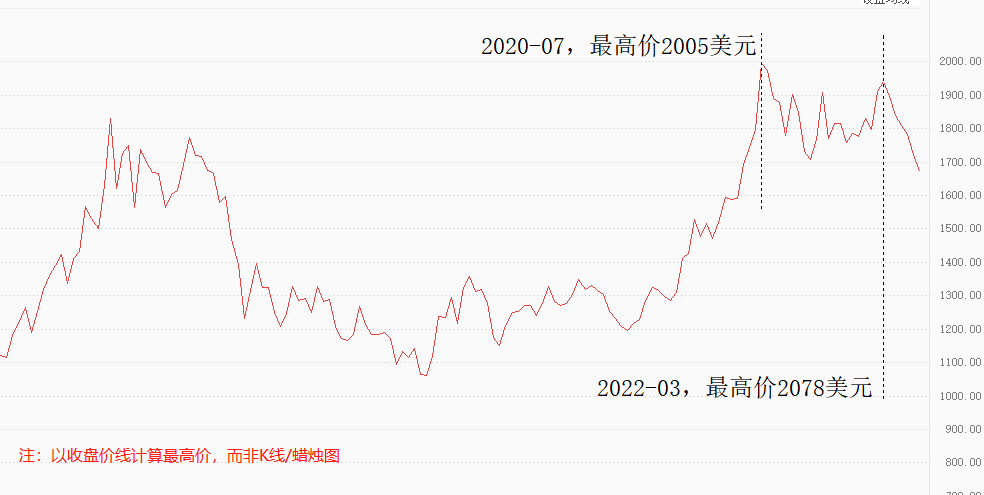 美国经济的焦点问题依旧是高通胀。8月综合CPI增速从8.5%回落至8.3%,但核心CPI从5.9%回升至6.3%,数据指向不统一,通胀拐点似来非来。CPI数据发布的同一天,美国总统拜登讲话称:“降低通胀还需要更多的时间和决心”,受此影响,市场预期从摇摆状态迅速转变为高通胀延续。高通胀意味着需求过剩、经济过热,而黄金在经济衰退的情况下更容易升值,现阶段美国经济表现不支持国际金价走强。实际上,国际金价两次突破2000美元关口都是因为担忧经济衰退:2020年7月疫情肆虐,经济前景黯淡,金价冲上2005美元;今年3月,俄乌冲突然爆发,避险情绪骤然升温,金价冲上2078美元。