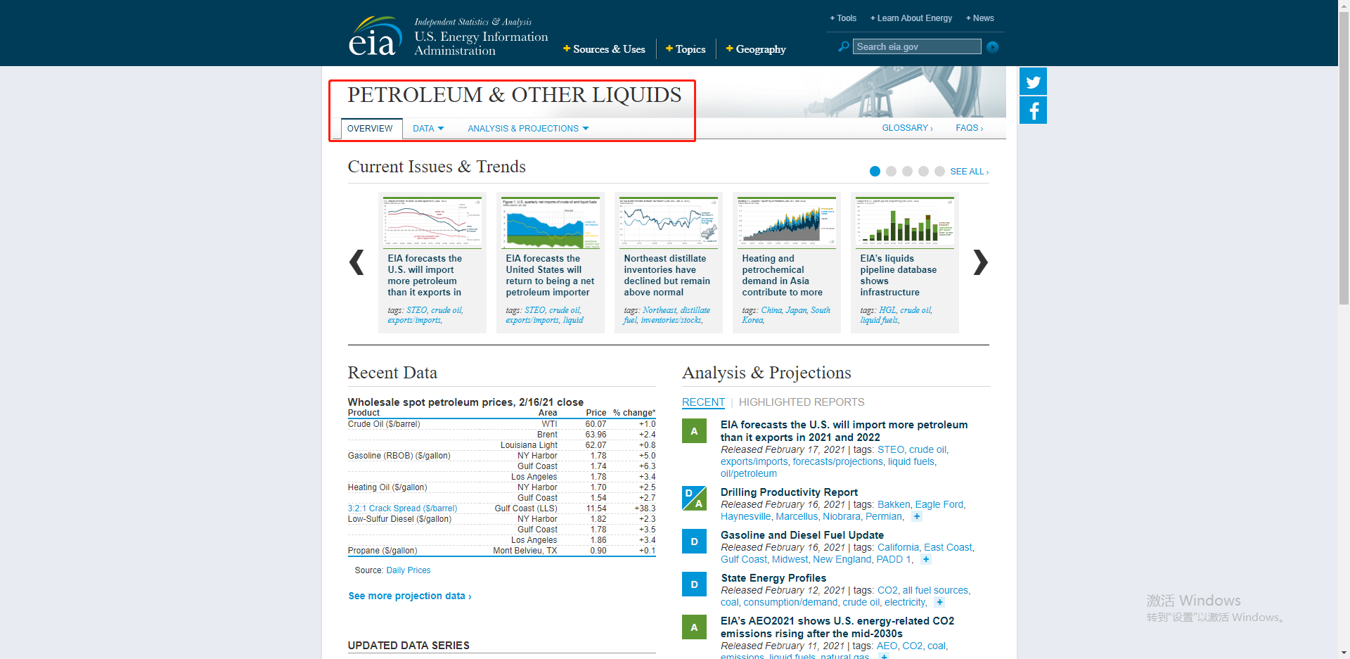 在EIA官网查询EIA库存数的流程是: