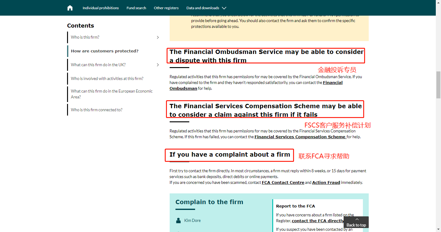 FCA给出了三种解决方案,第一种是金融投诉专员,当经纪商给到的解决方案不合理时,可寻求金融投诉专员;第二种是FSCS补偿计划,总额五万英镑,触发条件是经纪商倒闭;第三种是直接联系FCA官方,举报侵犯自己利益的经纪商或不法行为。