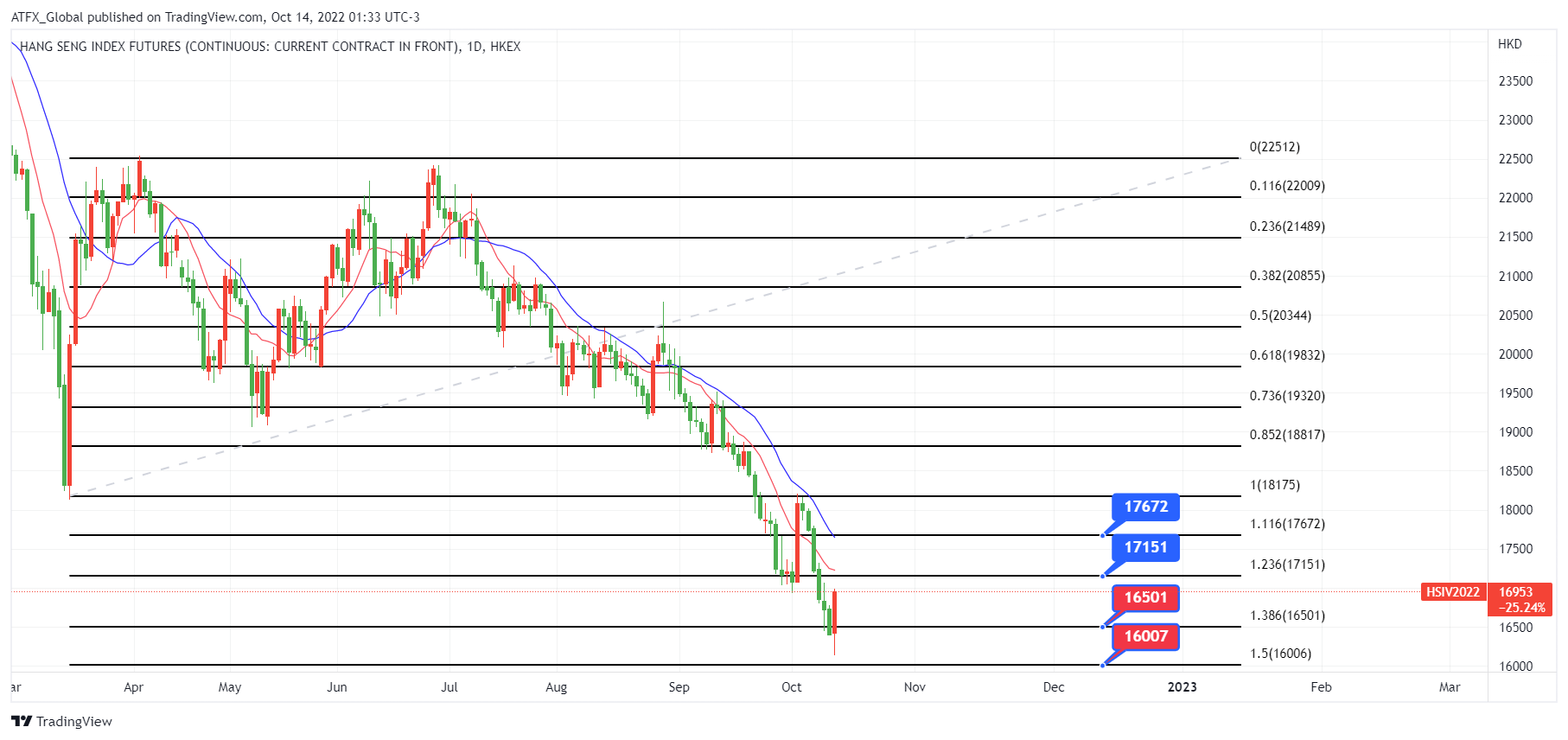 以下是恒生指数期货日图.