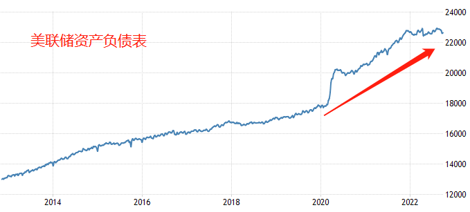 最新金价1637美元/盎司,与2020年一季度新冠疫情刚爆发时的价格基本一致。美联储的资产负债表总额依旧处于高位,流通在市场中的美元总量仍远高于2020年初时,这意味着黄金1591美元附近(2020年一季度收盘价)已经是近三年来的价值低点。除非美联储急剧缩减资产负债表(需要注意,加息并非直接的缩表措施),不然国际金价很难进一步下行。