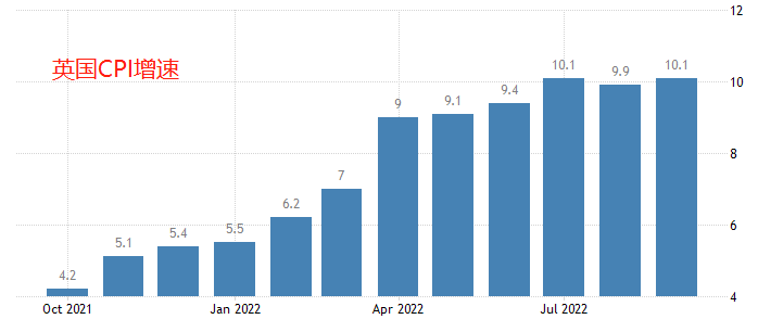 英国9月份CPI增速10.1%,既是年内新高,也是有记录以来的最高值。前任英国首相特拉斯就因为高通胀问题而被迫辞职,现任首相苏纳克的主要施政目标就是遏制高通胀。来自英国政府的压力和来自市场的压力共同作用下,英格兰银行只能选择加快紧缩步伐。外部的不利因素同样不容忽视。造成英国高通胀的因素,一方面是2020年货币超发,另一方面是能源和食品价格高企。对于第二部分因素,仅靠英格兰银行加息无济于事,必须调整对俄政策才有效果。