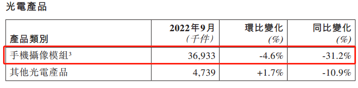 据半年报数据,舜宇光学的光学零件营收总额43.99亿元,占集团营收的25.9%,高于去年同期的21.9%;光电产品营收总额123.7亿元,占集团总营收72.9%,去年同期为77.2%。可以看出,当下光电产品依旧是舜玉光学的主营业务,光学零件的占比虽有提升,但绝对值依旧偏低。光电产品中的主流是手机摄像模组,10月份出货量4391.1万件,环比增长18.9%,同比降低13.9%;9月份同比降幅为31.2%,比较来看,10月份已有好转迹象。