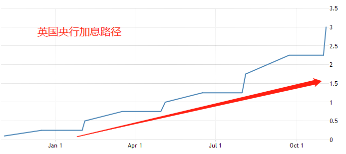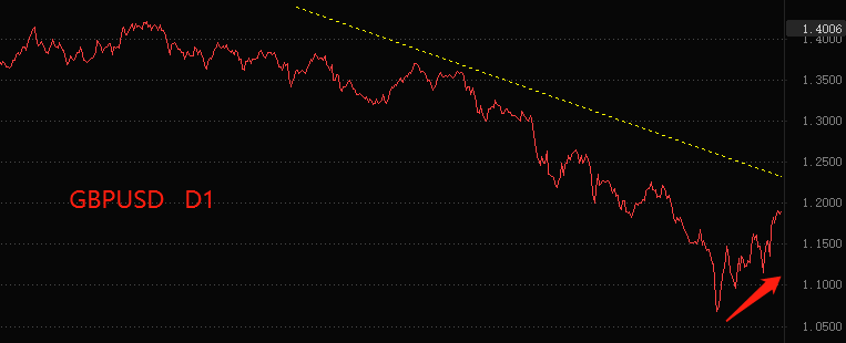 通货膨胀率与货币政策紧密相连。美国核心CPI出现拐点,意味着美联储大概率将暂缓激进加息的政策,单次加息幅度将从75基点降低至50基点甚至更低。英国CPI涨速依旧,意味着英央行还将维持激进的加息政策,75基点的单次加息幅度有可能上调为100基点。对于货币币值来说,谁的紧缩货币政策力度越大,谁的货币升值概率越高。所以,GBPUSD在未来极有可能扭转跌势,实现中期的持续走强。
