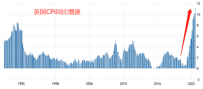 美国的通胀率已经出现拐点,英国的通胀率仍在迭创新高。据英国国家统计局11月16日数据,10月CPI同比增长11.1%,高于预期值10.7和前值10.1%,创出有记录以来最大值;10月核心CPI同比增长6.5%,高于预期值6.4%,但和前值持平。主要的物价上涨动力来自于房地产(涨幅26.6%)和公用事业,后者主要是指天然气(涨幅128.9%)和电力价格(65.7%)。上半年受“芯片荒”因素驱动而不断上涨的二手车价格,在10月份出现回落,降幅2.7%,并带动运输费用同比增速缓慢下降。