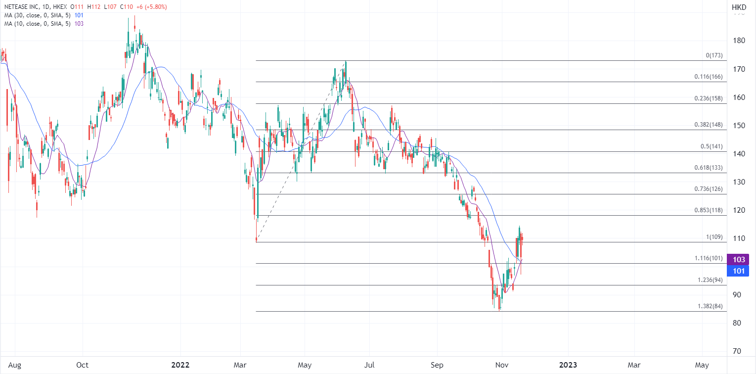 ATFX指出,今年以来整个游戏行业经历不少的沽压,不过随着最新的监管环境趋向稳定,自9月份上一批游戏版号发放市场重获信心,对于游戏行业发展的限制陆续放宽的环境下,游戏板块估值将跟随提升。技术上看只要股价仍低于118港元,就仍有调整的空间,如果期间有突破关键阻力在130至133水平。