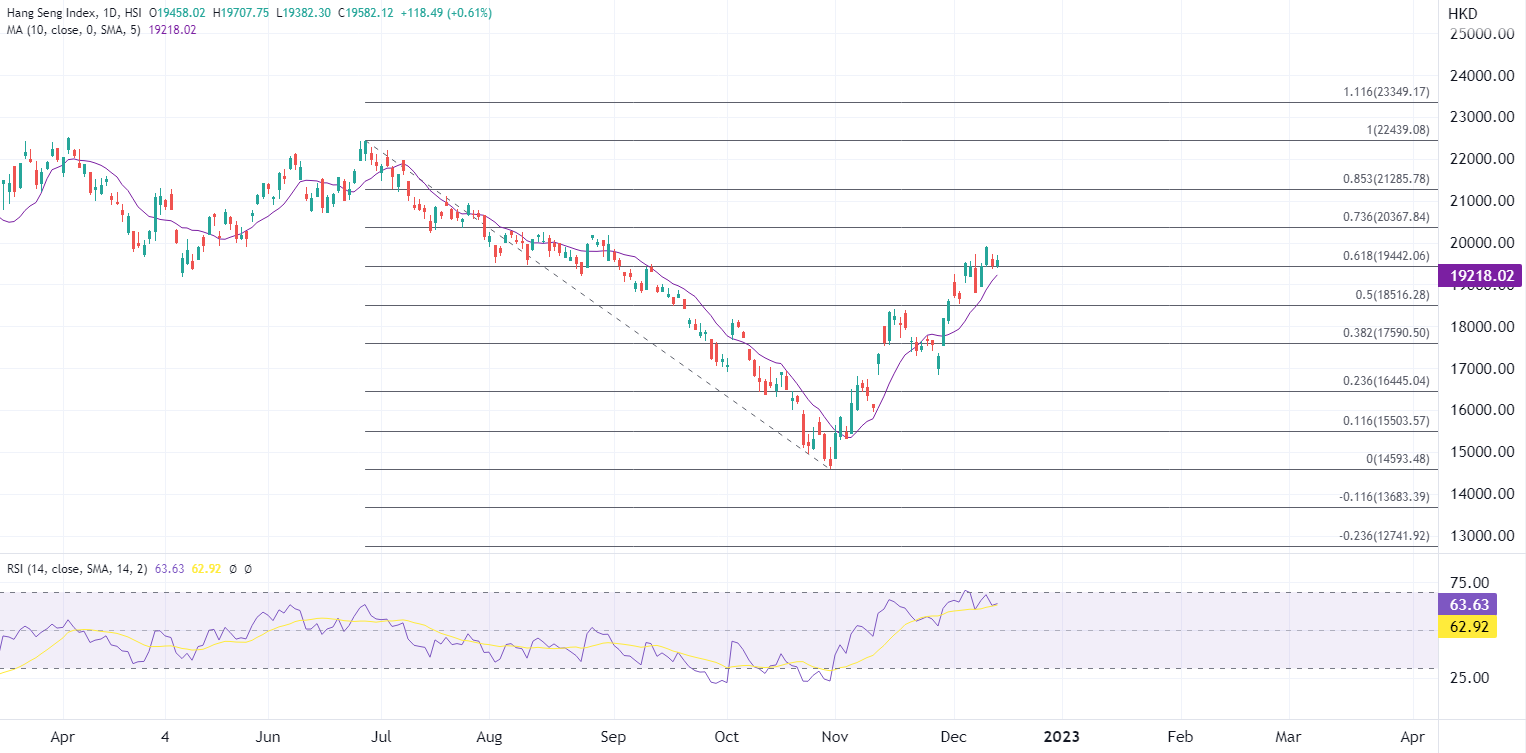 ATFX指出,连续两日尝试逼近20000点关口但遇阻后,自目前港股偏向在高位整固,技术上阻力未破,加上本周外围数大央行决议带来观望的情绪,如果期间缺乏利好刺激,港股上破的动能有限,期间不排除向19000关口重新调整,待关键事件落定或再寻动力指向20000至20367短期阻力范围。