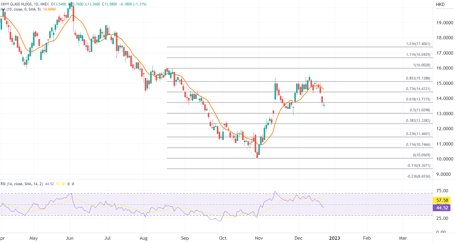 ATFX港股:昨日,信义玻璃(0868.HK)发布了盈利预警,预计2022年度信义玻璃权益持有人应占综合纯利金额预期较2021年的115.6亿港元减少至40.4亿港元至52亿港元之间,同比降幅55%至65%。