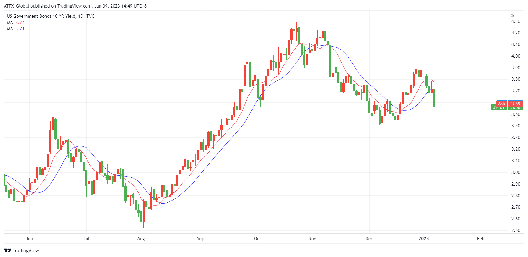 由于上周华尔街的情绪因美国12月工资增长放缓以及服务业活动大幅下滑的良性结合 , 市场缩减对美联储加息远超于5.1%的押注, 同时间美国5年及10年国债收益率回报大幅下降, 资金转投高风险股票投资而提振环球股市。