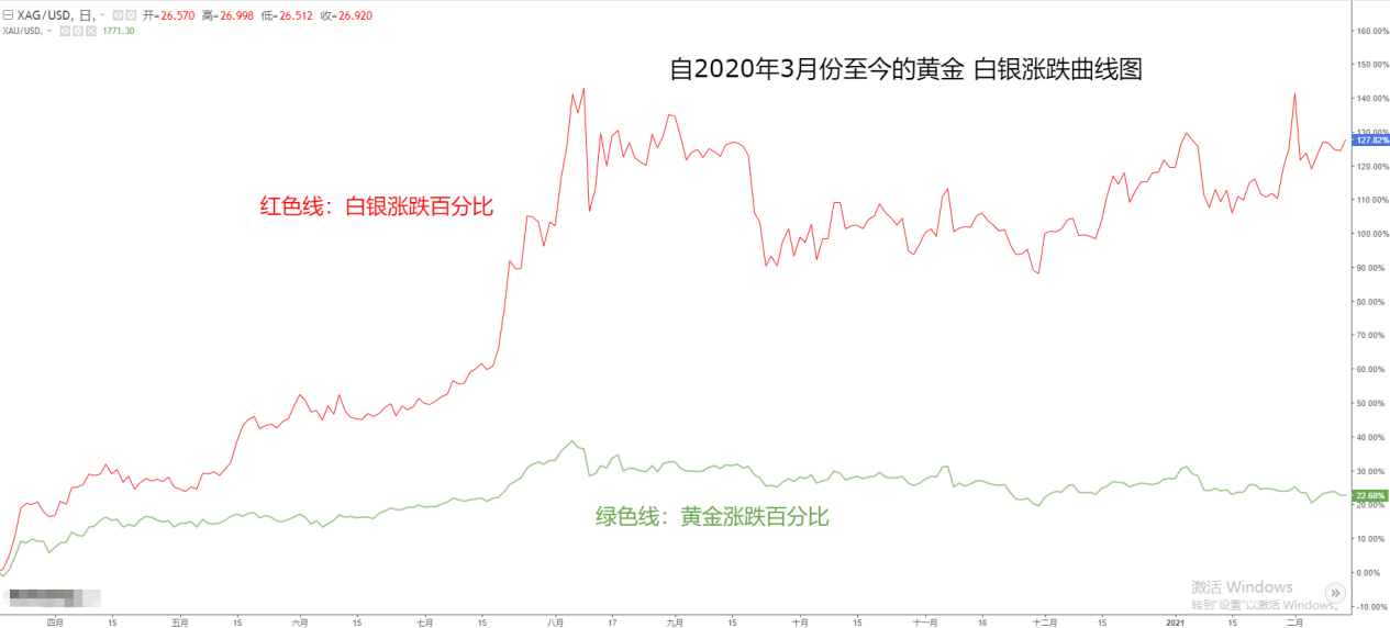 在波及全球的重大风险事件面前,白银的避险属性的受到大幅强化,工业属性会被人们忽略。比如2020年的新冠肺炎疫情。白银从3月的最低点11.28美元,有上涨至8月份最高点29.83美元,涨幅164.45%,令人瞠目结舌。同期的白银仅仅从1451美元上涨至2074美元,涨幅仅有42.93%,相形见绌。