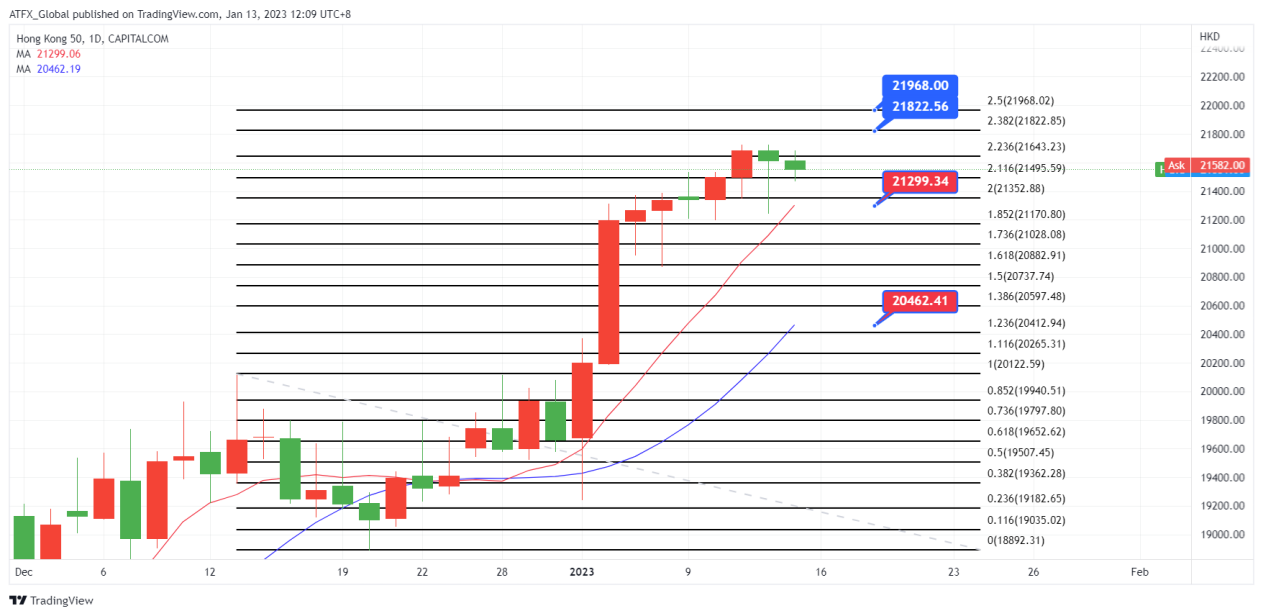 ATFX恒指:美国最新的通胀数据显示通胀压力降温,美国12月整体通胀率6.5%,而之前为7.1%, 美国12 月核心通胀率5.7% 对比之前的6%。市场对下个月加息25个基点的预期从77% 飙升至95%, 接近充分相信下月加息仅25个基点。通胀放缓及预期美联储加息幅度收缩, 提振了市场参与者对美联储官员可能在下一次(2月1 日)政策会议上不那么激进地加息的希望, 为股票投资参与者保持持仓意愿,为隔晚美国三大指数带来平稳, 唯独受利率走向影响的纳斯达克指数跟道琼斯工厂平均指数录得0.64%升幅。在周四的美国股市交易中,道琼斯工业平均指数上涨 217 点或 0.6% 至 34,190,标准普尔 500 指数上涨 13.6 点或 0.3% 至 3,983.2,纳斯达克综合指数上涨 69.4 点或 0.6% 至 11,001.1。美国债券市场方面,美国10年期国债利率处于 3.444% 的 5 周低点, 这因素支持股市在过去一段时间表现上升。