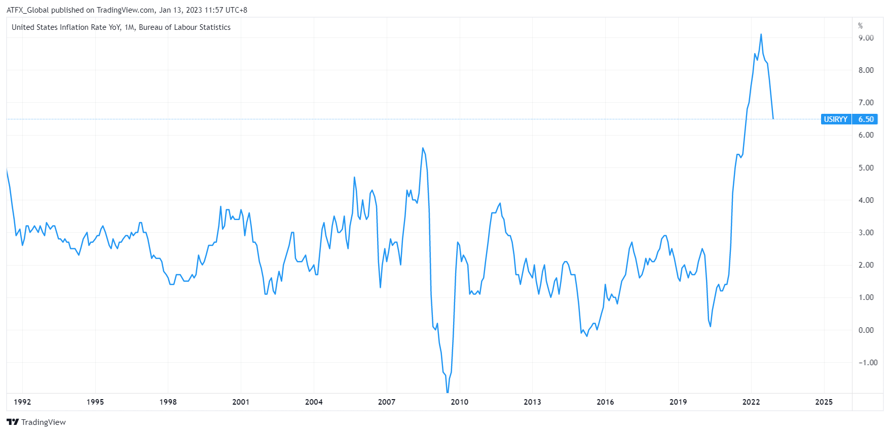 ▲美国12月整体通胀率6.5%-ATFX