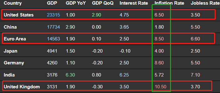 2023年欧洲和美国的宏观经济有可能以“经济衰退”为主旋律,因为存在“高通胀”和“高利率”双重负面因素压制,投资和消费大概率出现萎缩。美联储、英央行、欧央行将会在今年依次停止加息动作,这已经成为市场共识。最大的悬念是“几月份开始停止加息”,交易者需要从英央行行长和欧央行行长的讲话中寻找蛛丝马迹。