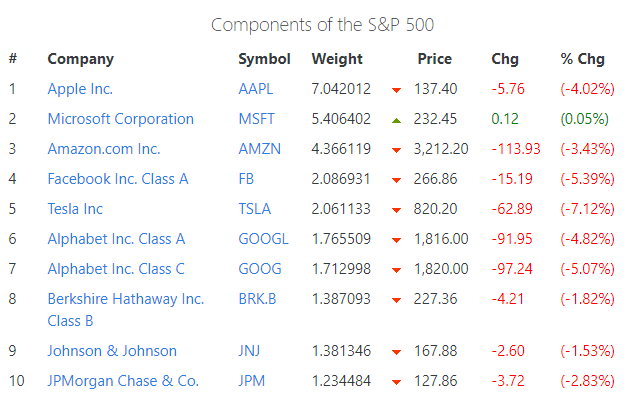 ▲图为标普500指数的前十大权重股-ATFX