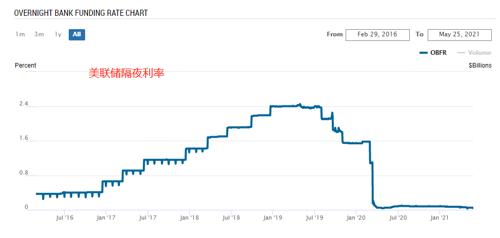 低水平的隔夜利率代表市场上货币流动性过剩,中央银行应当适度收紧货币政策;较高水平的隔夜利率代表市场上货币流动性不足,中央银行应当采取宽松的货币政策。现如今美联储隔夜利率就处于较低水平,但美联储并没有收紧货币政策的明显倾向,主要是因为美联储担心新冠肺炎疫情的冲击依旧存在,贸然紧缩货币政策可能会导致宏观经济再次陷入衰退。所以,低水平的隔夜利率可以维持很长时间,并不是说低利率一出现就会出现转折。同样的,高水平的隔夜利率也会因为各种原因而维持在高位,并不是说触及高位之后就会自动回落。
