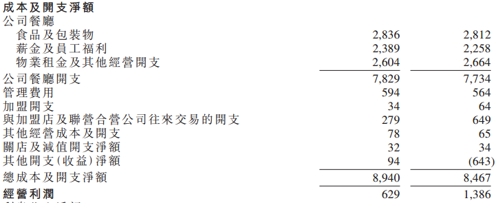 餐厅开支总额78.29亿美元,于2021年开支基本相同。管理费用总额同样没有出现大的波动。加盟开支和往来交易开支大幅减少,主要受到收入端急剧下降的影响。其他类目的开支总额较小,对总成本影响不大。总收入扣除总成本后是经营利润,2022年总额为6.29亿美元,相比2021年的13.86亿美元,同比接近腰斩。官方将这种下降归结于2021年杭州肯德基股权所产生的6.18亿美元非现金收益,造成的基数扩大。