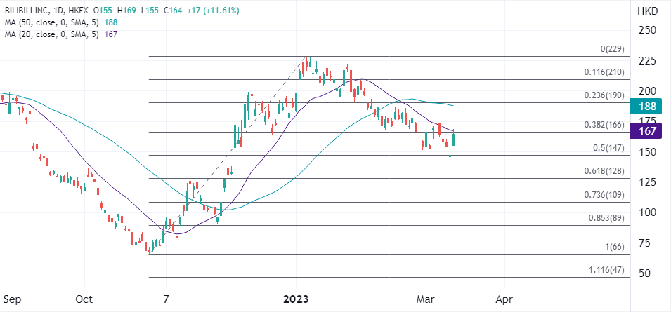 近期港股整体走势在反复中偏软,科技股未能提供足够支撑,哔哩哔哩股价跟随震荡,不过相对寻获支撑,上周其公布2022年第四季度业绩后股价获得看涨的跟进,当时在绩后港股股价一度高开10%。