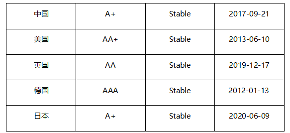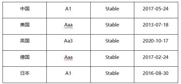 其余国家的评级与标准普尔大体相似,就不做逐个介绍。