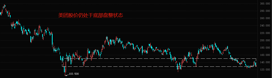 技术角度看,美团股价仍处于底部盘整状态。一年前,2022年3月9日,美团港股收盘价148港元。今日,2023年3月9日,美团最新报价131.1港元(截至11:30)。一年时间里,美团股价跌幅不足17港元,基本原地踏步。不止美团,港股市场互联网头部上市公司——腾讯控股和阿里巴巴——一年前和一年后的股价也是基本一致。什么原因导致了美团股价超强的稳定性?一方面是因为财务数据喜忧参半,另一方面是监管政策正处于转折期。由于需要提振宏观经济增速,监管政策对互联网企业相对柔和,这是一项利多因素。但是,在“流量见顶”的行业问题困扰下,美团,阿里和腾讯的业绩面表现不尽如人意。展望未来,我们认为美团股价这种“不上不下”的状态还将持续较长时间,直到股票市场对于互联网行业未来的发展形成共识。