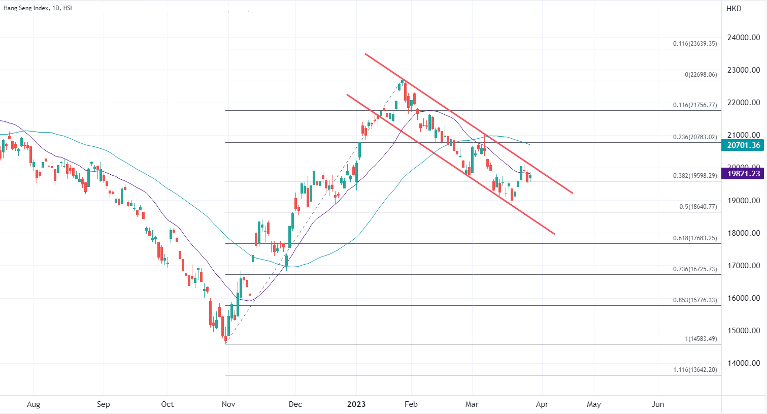 ATFX指,外围的部分不确定落定后利好日内港股利好氛围,不过自身缺乏确切的反弹动能,一方面是由于业绩期接近尾声,另一方面则是技术性关键压力依然存在。恒指在周一尝试向两个月的下行通道顶部靠近,但是短暂驻足20均线后回吐,在两万点关口被拒表明空头可能再次拉低价格向19000目标靠近。