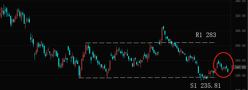 技术分析角度看,比亚迪的股价从S1向R1上涨的过程当中,在260港元附近遇阻,未来将继续试探S1 235.81的支撑作用。长周期来看,自从2022年6月份比亚迪股价创出历史新高之后,做空力量便占据上风,将近一年时间里面都没有形成有效反弹。叠加金融市场对新能源汽车行业的担忧情绪,比亚迪的股价或许在中短期内难有超预期表现。