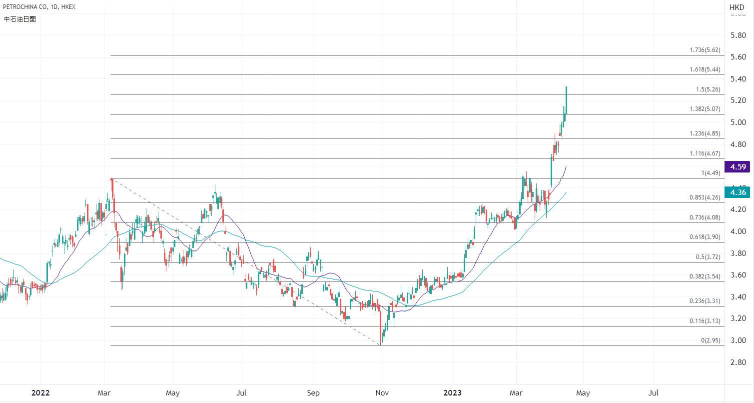 国际油价上周五窄幅震荡但维持近期高位,连续四周上涨。日内港股「三桶油」创52周高位,中石油(00857)午后升5.6%,中石化(00386)上涨3.9%,中海油(00883)上涨逾2%。