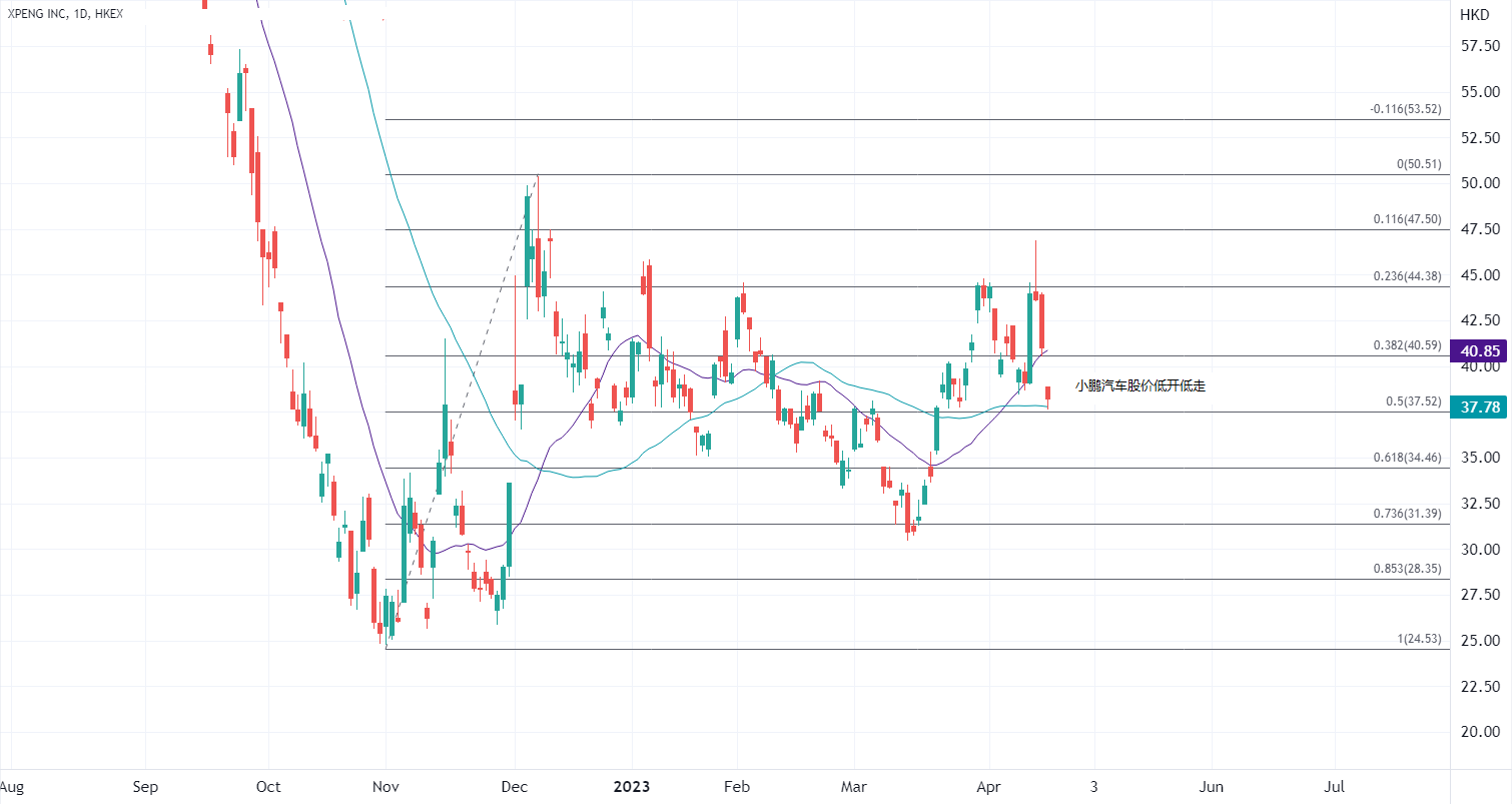 ATFX港股:特斯拉业绩逊预期,美股盘后股价急跌。且特斯拉下调多款车型售价,市场担忧价格战愈演愈烈,隔夜美股新能源车企大挫,今早港股汽车相关股亦普遍跑输。小鹏汽车(09868)跌逾7%,蔚来(09866)跌超4%,理想02015)跌超2%。