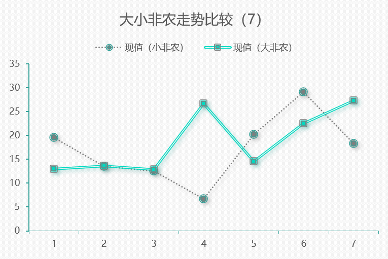 在总7个月数据中,大小非农表现一致的情况出现了5次,也就是说,以小非农作为大非农的领先指标,粗略估计胜率为71.42% 。ADP在11月份(第四个数据点)触底,大非农在12月份(第五个数据点)触底。ADP在1月份(第六个数据点)就已经达到峰值,并在2月份(第七个数据点)出现较大幅度下挫,但大非农在2月份才达到峰值,三月份次出现大幅下挫。由此可见,ADP指标的反应及时性要优于大非农数据。