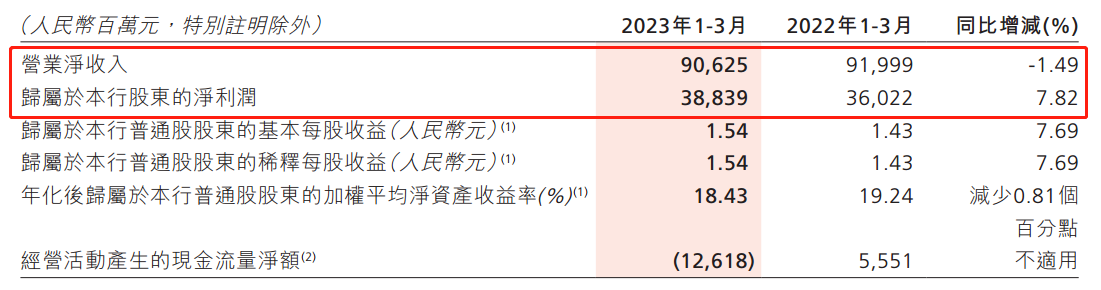 ATFX港股:招商银行是A股市场银行板块第一高价股,总市值8126亿元,排名第五。作为股份制银行,招商银行的总市值甚至超越了交通银行、邮储银行等国有银行,其实力可见一斑。但是,昨日公布的一季报显示,招商银行营收总额906.4亿元,同比减少1.47%,出现罕见下降。净利润总额388.4亿元,同比微增7.82%。两项核心指标表现均不佳,导致招商银行A股股价下跌4.73%(截至11:30),港股股价下跌6.45%,股票市场信心受挫。