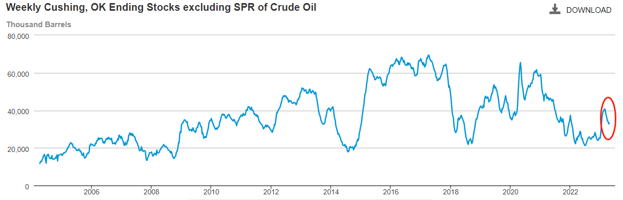 周三公布的EIA数据显示,美国至4月21日当周EIA俄克拉荷马州库欣原油库存增加31.9万桶,前值为减少108.8万桶,这是库存曲线在2月24日触顶回落后的首次增加。长周期看,库欣原油库存曲线处于2022年6月开始的增长趋势中,近两月的减少仅仅为回调,一旦寻得支撑,将很快恢复为增长状态。随着库存的增加,WTI价格将重归跌势。