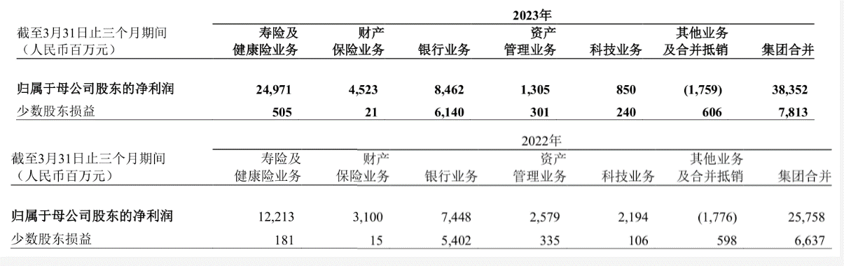 按业务划分,寿险及健康险新业务价值按年增长8.8%,至137亿元,由于公司今年采用新保险合同准则,并对同期报表进行了追溯调整,若去年首季度新业务价值采用该方法重述,按年增长则达21.1%;平安产险保险服务收入按年升7.1%,至763.1亿元,整体承保综合成本率较去年同期上升2个百分点至98.7%。