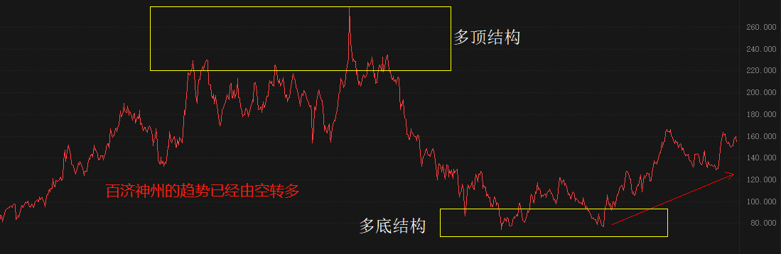 从技术角度看,百济神州(港股)的日线级别趋势已经由空转多。2021年1月~11月,漫长的休整期之后,百济神州股价形成多顶结构,宣告前一轮上涨趋势终结。2022年5月~10月,白济神州形成多底结构,又宣告前一轮下跌趋势终结。2022年11月份开始,百济神州正式进入新一轮上涨,截至目前,涨势仍在延续。
