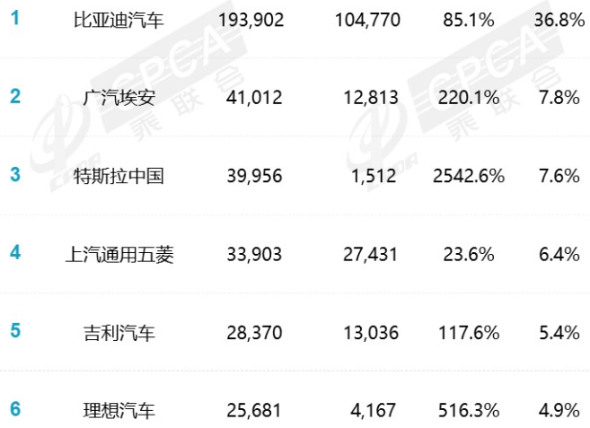 据乘联会数据,4月份中国乘用车销量163万辆,同比增长55.5%,其中新能源汽车销量52.7万辆,占比32.33%,同比增长85.6%。可以看出,中国的新能源汽车行业仍存在旺盛的需求,行业景气度极高。新能源汽车厂商销量排行榜当中,比亚迪以19.3万辆位列第一名,特斯拉以3.9万辆位列第三。理想汽车的销量为2.5万辆,位居排行榜第六位,表现相对良好。
