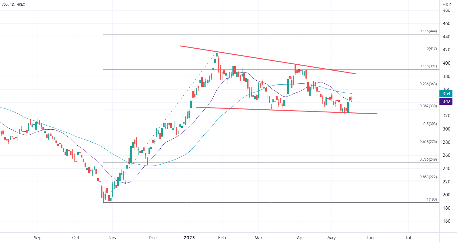 ATFX港股:腾讯即将于今日公布2023Q1业绩,彭博综合预计,经调整净利润325亿元人民币,同比升27%,调整后EPS为3.415元人民币;收入则增长8%至1456亿元人民币。多间大行对腾讯业绩保持乐观,维持买入评级。