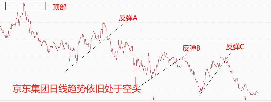技术角度看,京东集团日线趋势依旧处于空头。2021年2月份,京东集团的股价形成长期顶部,两年多时间的下跌走势当中出现了三波反弹,如图中所示,三波反弹都没能改变空头趋势结构。今年1月末开始,京东集团股价开启新一轮顺势下跌,市价运营与140中期支撑附近。虽然短期内股价有平台整理迹象,但预计最终仍将下破140,向下一目标130波动。