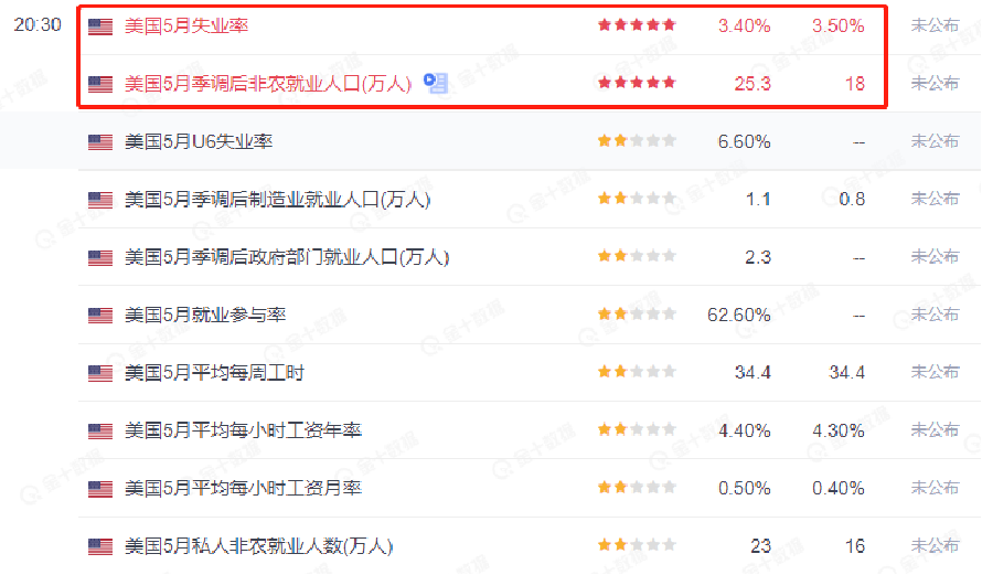 美国非农就业报告,又叫做大非农,将于本周五北京时间20:30公布。新增非农就业人口的前值为25.3万人,市场预期将会增加18万人,低于前值,预计本次非农表现不佳,美联储6月份利率决议停止加息的可能性加大,对美元指数形成利空,但会对非美货币及美股形成提振。失业率前值为3.4%,市场预期值为3.5%,预期将微幅增加。由于充分就业标准线为5%,美国失业率处于非常健康状态,所以失业率微幅的增加不会对金融市场形成显著影响。