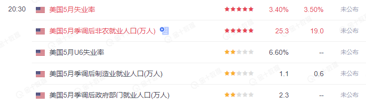 ATFX国际:北京时间20:30,美国劳工部劳动统计局将公布5月份非农就业报告,国际市场严阵以待。非农报告中最受关注的数据有两个,一个是新增非农就业人口,前值为25.3万人,预期值19万人,预期偏悲观;另一个是失业率,前值为3.4%,预期值3.5%,预期将小幅增长。由于周四公布的ADP数据表现大超预期,所以晚间的大非农也存在高于预期值的可能。美元指数将出现剧烈波动,以ADP公布当日的表现作参照,晚间美元指数大概率会收跌,美国股市、非美货币、贵金属可能受到提振。
