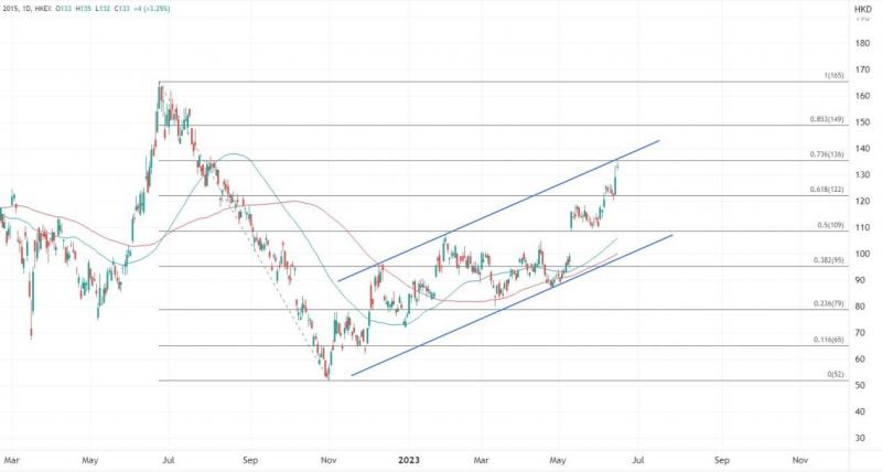 ATFX指,随着销量数据的不断更迭,业内的竞争一直在加剧,如果理想汽车销量增速能继续保持显著优于行业平均的水平,将提升其财务的稳健度,股价还有看涨空间。理想汽车股价今年以来已经累计涨超30%,远远跑赢大市,美股股价更是累计上涨逾50%,从成交量来看依然具备上行优势,目前以136至140港元为目标,但留意长期上行通道顶部带来的阻力。