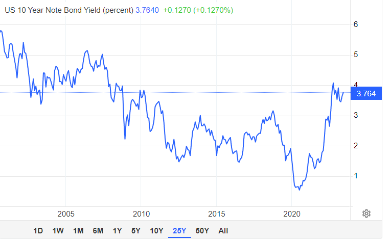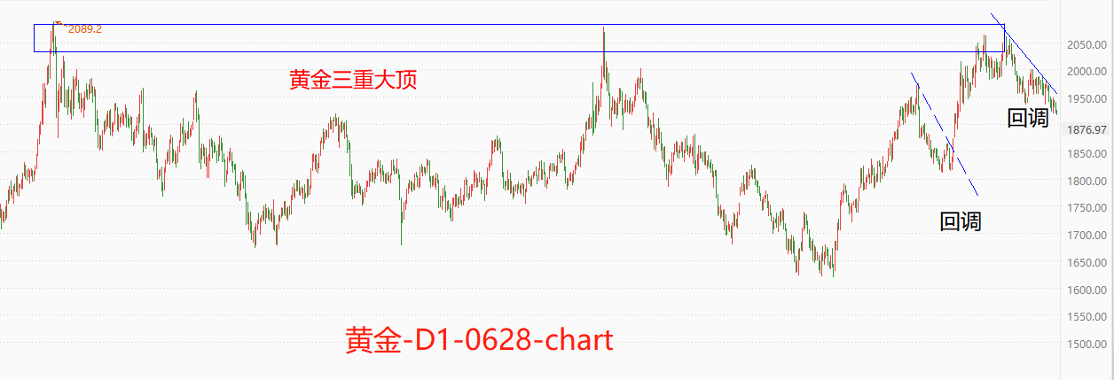 黄金和美债一样,都具有避险属性,两者价格共振。上图为十年期美债收益率的走势曲线,可以看出,去年10月份至今,收益率虽然有所下降,但降幅非常有限。今年4月份至今,收益率出现大反弹,市价已经达到3.764%,接近前期高点4.077%。债券收益率保持坚挺,意味着市场资金仍看好未来的经济复苏。经济复苏态势下,黄金价格自然会跌跌不休。