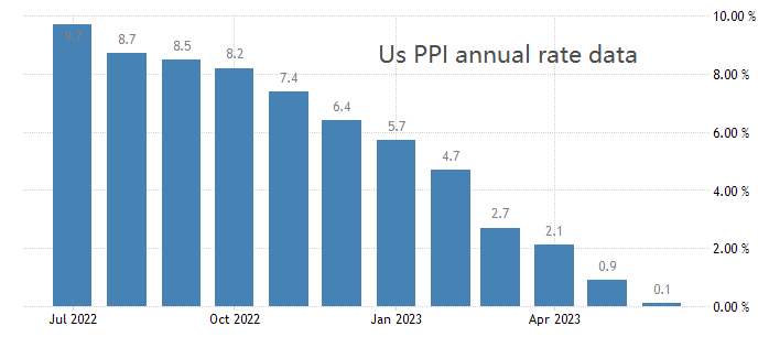 美国的生产者物价指数PPI在迅速下降。6月PPI年率为0.1%,连续12个月下降,巅峰时期高达11.7%,现如今随时有进入负增速的可能。PPI对大宗原材料的价格波动具有指导作用,诸如有色/黑色金属、纺织材料、化工原料市场,有可能面临价格下行压力。